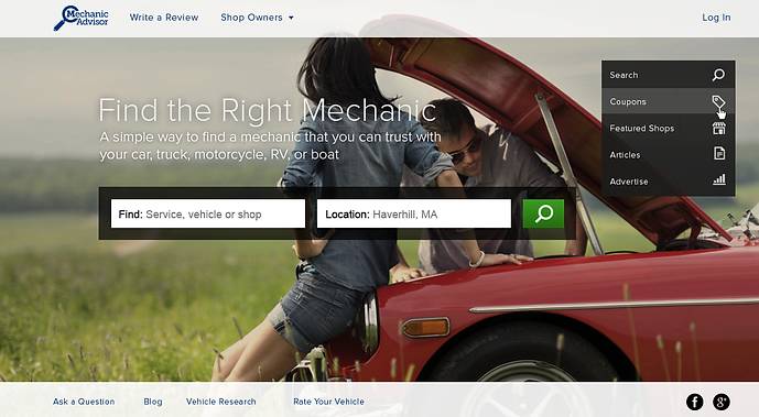 MechanicAdvisor Home Page Design Concept + Interactivity